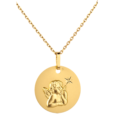 Medaille Engel Raphael en Sterretje 16 mm - 18 karaat geelgoud