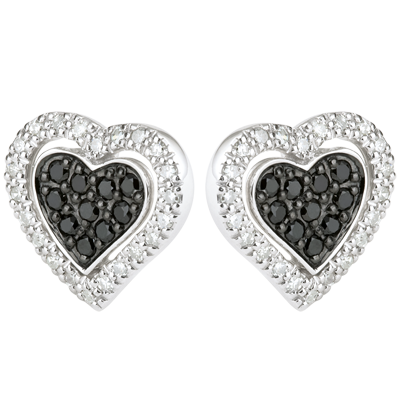 Elegante en grote oorbellen, deze harten met zwarte en witte diamanten zullen niet onopgemerkt blijven.