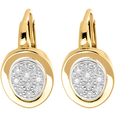 De schittering van een diamant pavézetting genesteld in de zoetheid en de intimiteit van een alkoof in geelgoud.