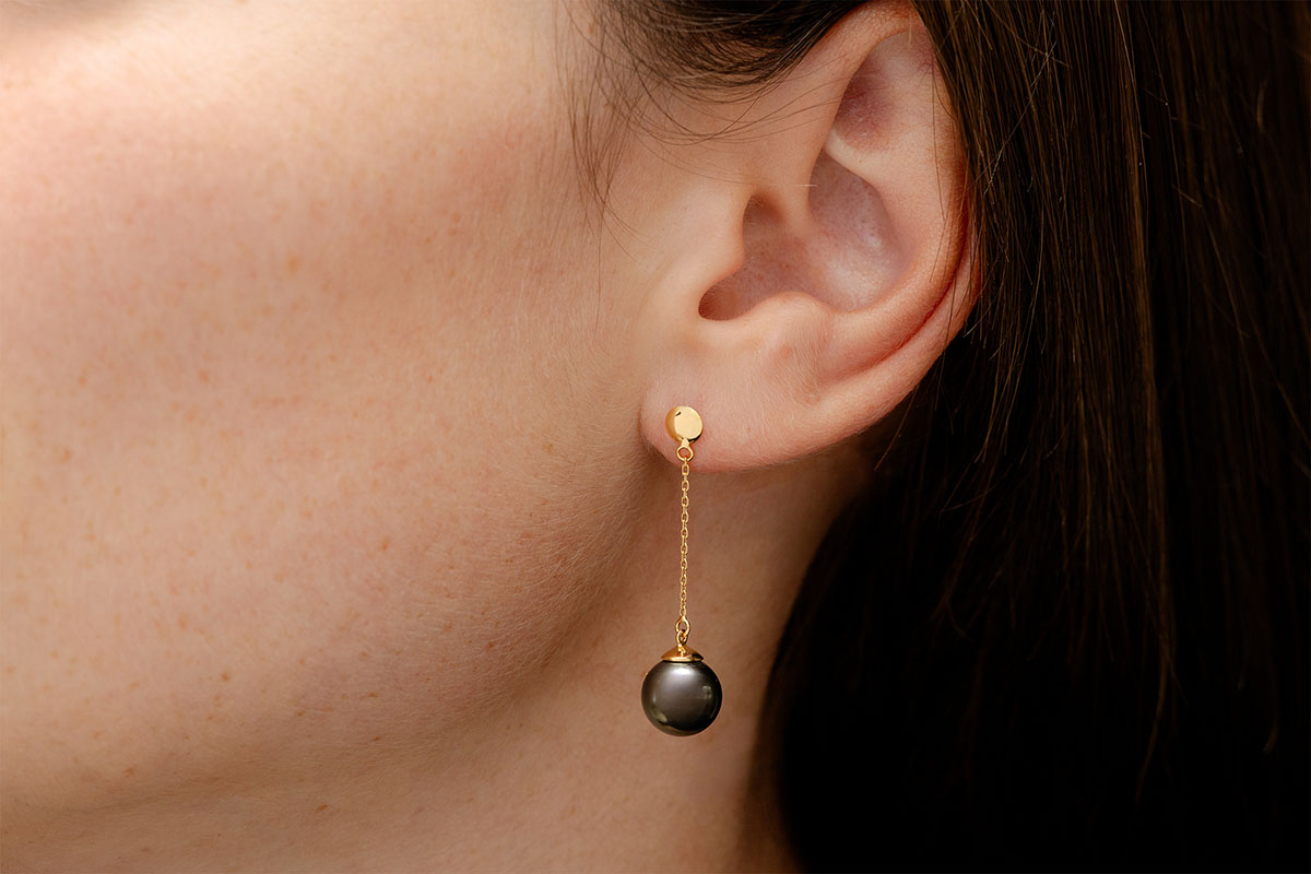 Twee mooie parels gehangen door een ketting van geelgoud.