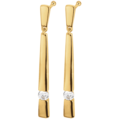 Oorbellen in geelgoud met een diamant, voor slanke en stijlvolle sieraden.