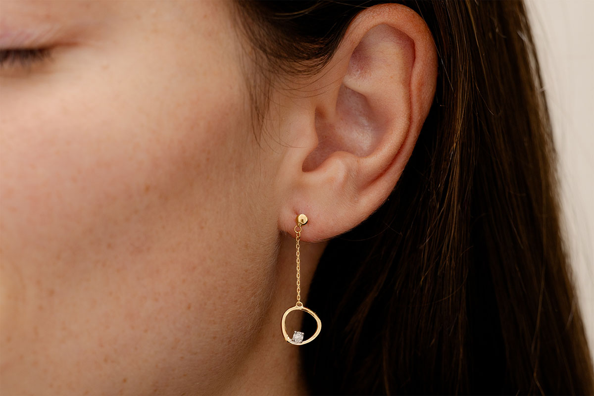 Moderne en vrouwelijke hangende oorbellen.