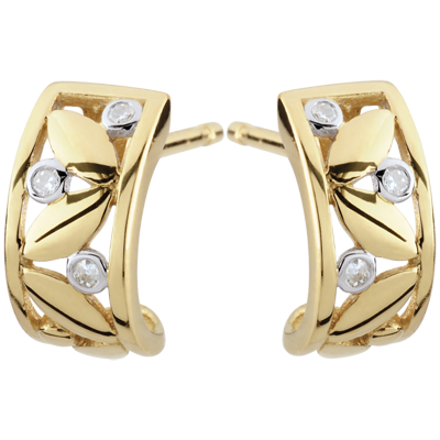 Een met diamanten bezaaid blad is gedaald in een gouden kistje in de vorm van halve Creolen.