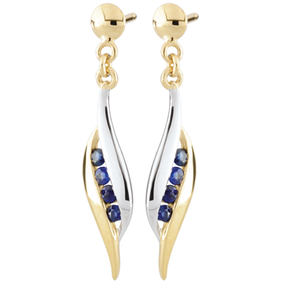 Oorbellen Daniella - Saffier - 9 karaat witgoud en geelgoud