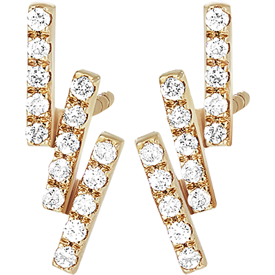 Een paar stud oorbellen in geelgoud bezet met 30 diamanten als een schitterend vuurwerk. Zowel modern als tijdloos.