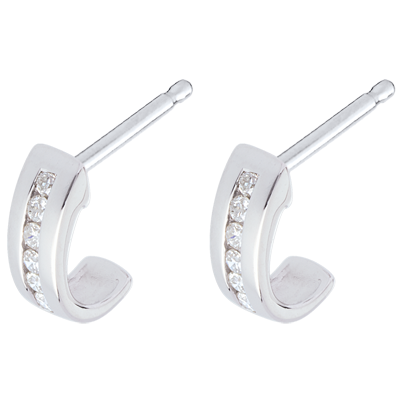 De perfecte boog van een rail diamanten gemarkeerd door een halve maan in witgoud.