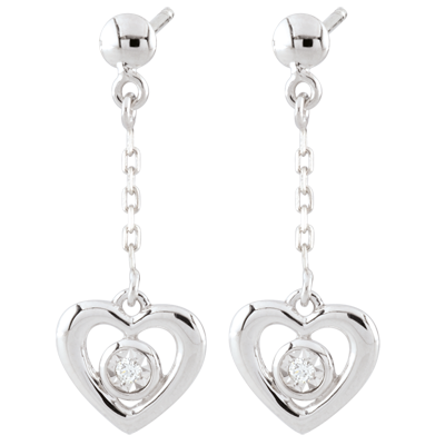 Een mooi hartje, drager van een diamant hart hangt sierlijk aan elk van deze oorbellen.