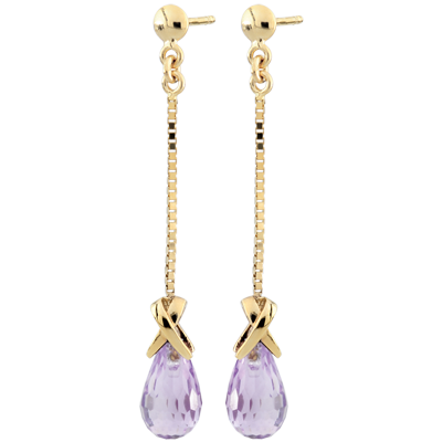 Twee amethisten druppels gedragen door een gouden kruis voor glans aan je oren.