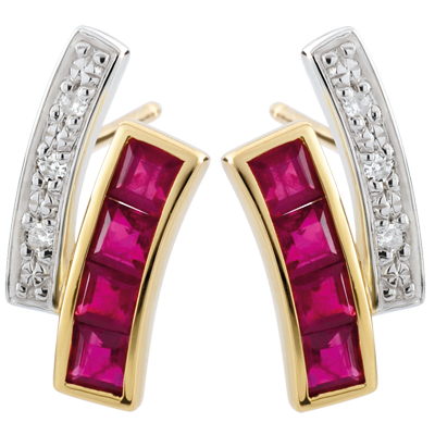 Oorbellen Kiona - robijn en Diamant - 9 karaat witgoud en geelgoud