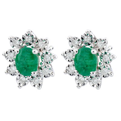 EEUWIGE EDELWEISS NR. 4Stud oorbellen Bloemen - Witgoud 9 karaat - Smaragd ID : 2581 4.7