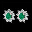 Op iedere oorbel een ovalen synthetische smaragd in het centrum van een witgouden madelief met bloemblaadjes ingelegd met een synthetische diamanten.…