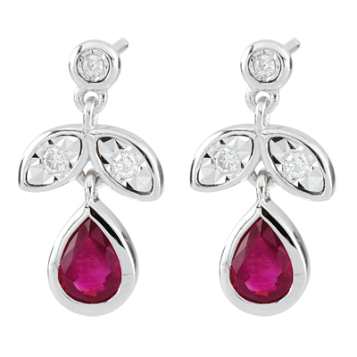 Oorbellen - robijn en Diamant - 9 karaat witgoud