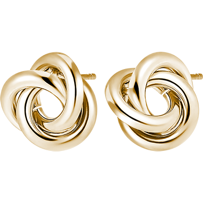 De evenwichtige combinatie van drie geelgouden ringen voor een tijdloos paar oorbellen.