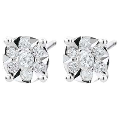ORIGINE NR. 35Stud oorbellen - Witgoud 9 karaat - Cluster van natuurlijke diamantent ID : 2497