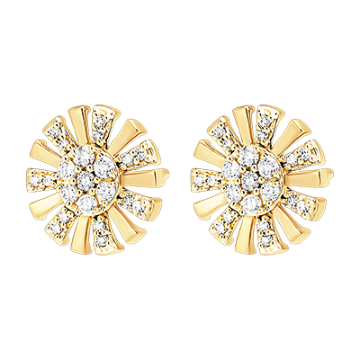Stralende zonnen met schitterende contouren, voor een paar elegante, verfijnde, gewoonweg stralende geelgouden studs.