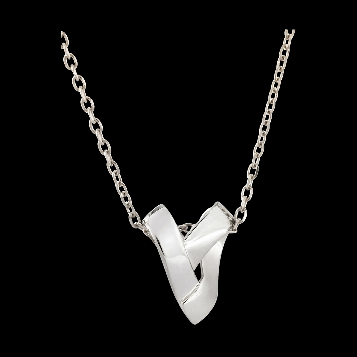 Als een vouw uit edel metaal ontstaat dit hart in 9 karaat witgoud.Een hanger in hartvorm, gevouwen uit een verfijnd gouden lint en beweeglijk aan een fijne ketting.Het motief meet circa 11 mm breed en 12,5 mm hoog.…