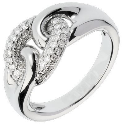 De eeuwige liefde van diamanten omhelst door witgouden armen.