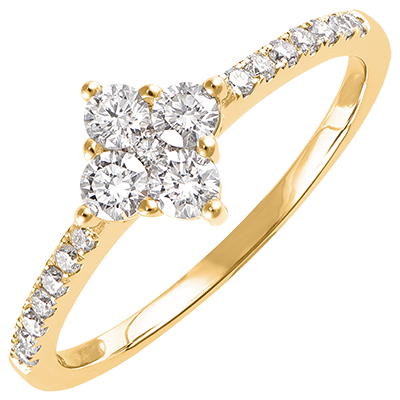 LENTEKRIEBELS NR. 75Verlovingsringen - Geelgoud 9 karaat - Cluster van natuurlijke diamantent ID : 4563