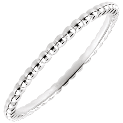Een veelheid aan witgouden parels opeenvolgend om een ring te vormen. Perfect voor een originele en verfijnde trouwring, met meerdere kleuren of gecombineerd met andere ringen.