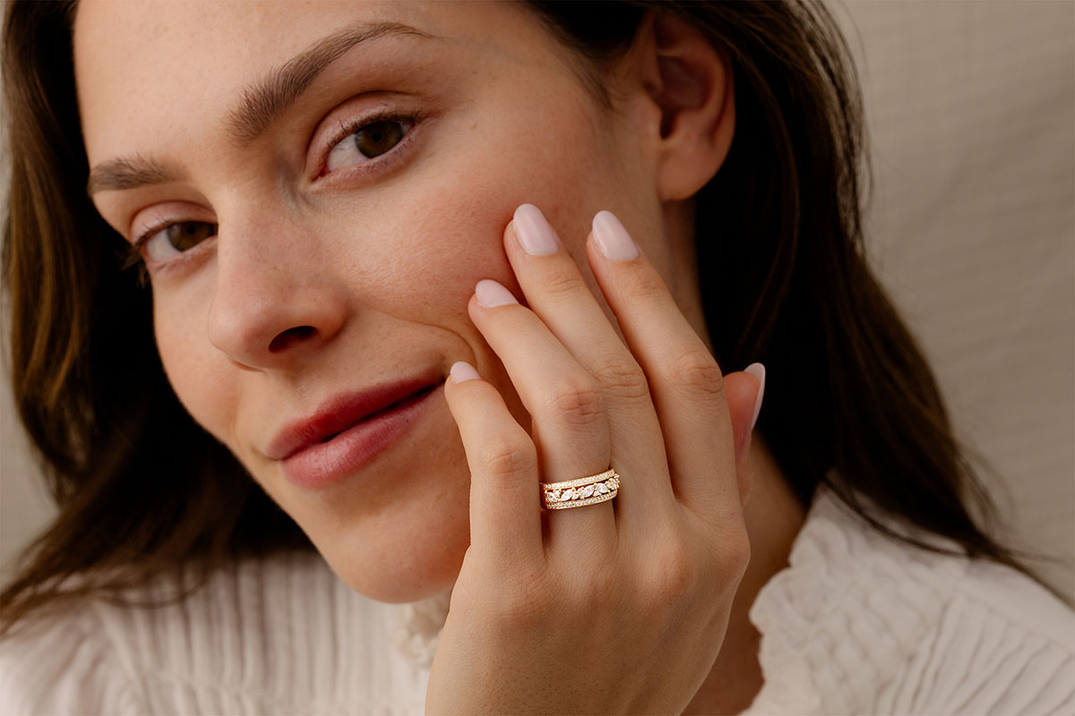 Deze bijzondere ring met navette briljanten is ideaal als trouwring of geschenk..