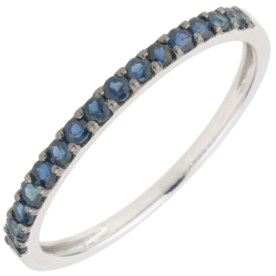 Ring Paradijsvogel - een rij - 9 karaat witgoud en Blauwe Saffier