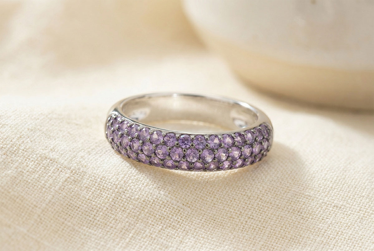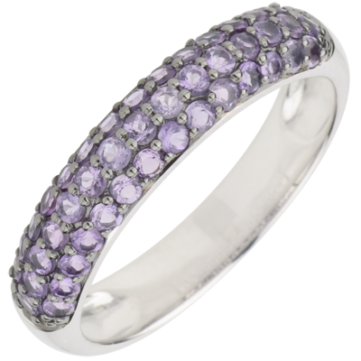 Ring Paradijsvogel - drie rijen - 9 karaat witgoud en amethist