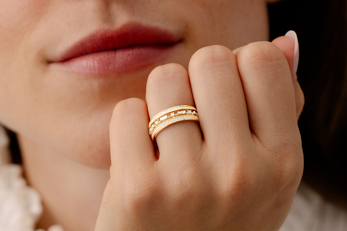 Elegantie en persoonlijkheid kenmerken deze ring die schittert door de unieke afwisseling van briljanten en diamanten op geelgoud.