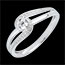 De ring heeft een elegant ontwerp met een dubbele gouden boog die de diamant liefdevol omarmt en benadrukt.