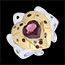 - Edelstenen: 1 rhodoliet, 6 amethist, 6 granaat met totaal 1,64 karaat