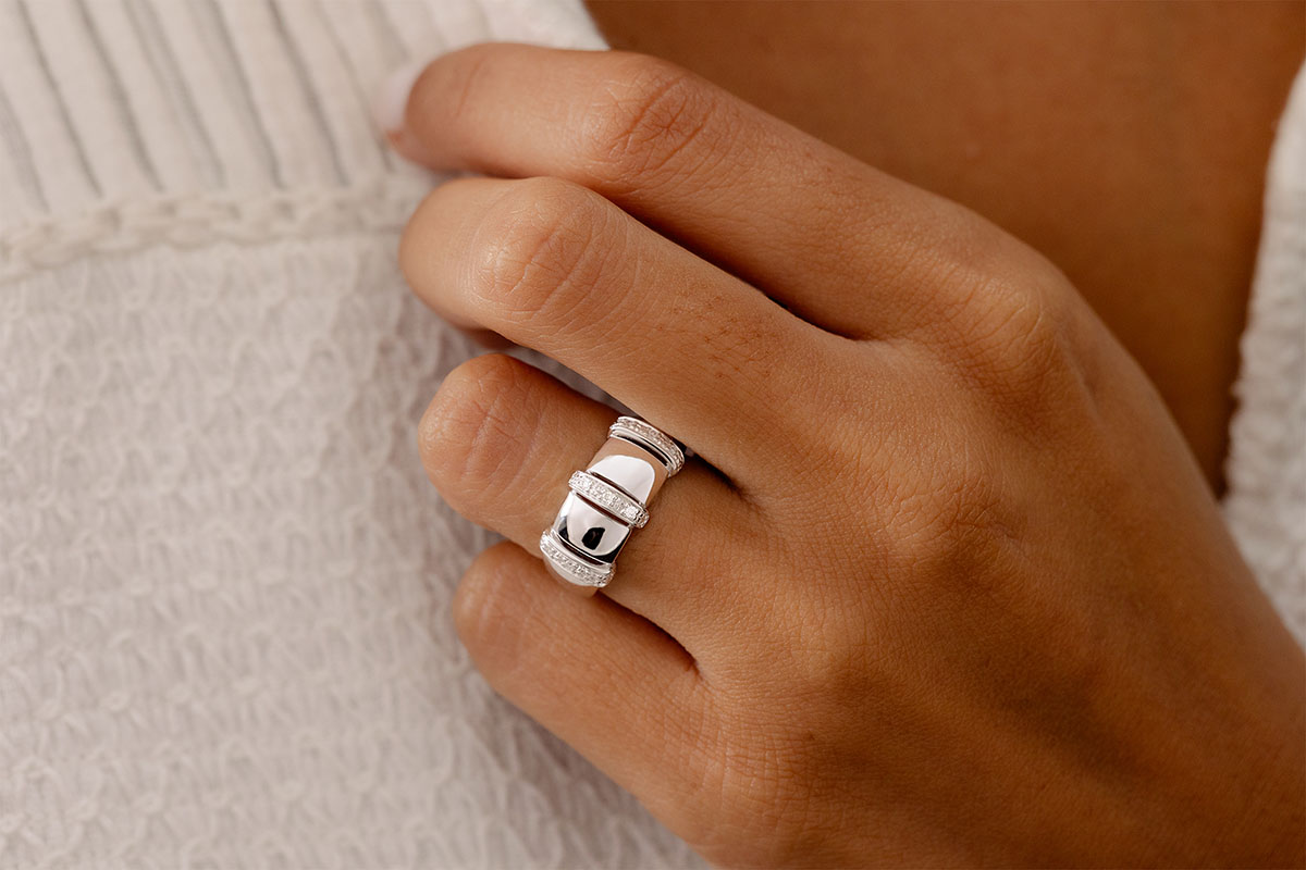 Het plezier van een ring gekoppeld aan 3 verharde diamanten.