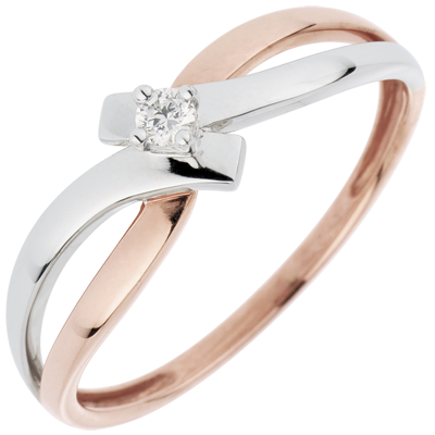 Solitaire Ring Solitaire Liefdesnest - Licht - 0.05 karaat Diamant witgoud en roségoud