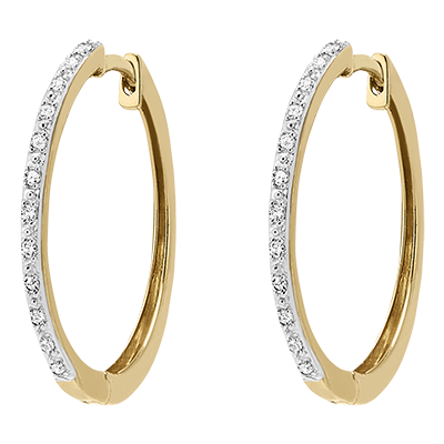 Een paar semi-gezette geelgouden hoepeloorbellen voor een vleugje sprankeling en moderniteit. 18mm diameter ring