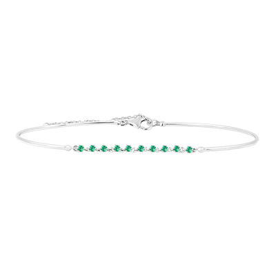 "Gracile" is een witgouden bangle armband versierd met fijne smaragden. De delicate ketting en het strakke ontwerp maken het een essentieel stuk voor een vleugje finesse en elegantie.