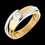 De ring weegt minimaal 5,7 gram in 18K wit- en geelgoud.
