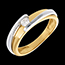 De 18-karaats gouden zetting benadrukt subtiel een centraal diamant van 0,125 karaat, briljant geslepen, kwaliteit HSI.