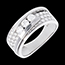 Hij toont een trilogie van 35 witte diamanten met een totaalgewicht van 0,855 karaat, kwaliteit H SI, voor een verfijnde schittering.