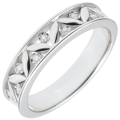 7 diamanten : 0.03 karaat - Wit goud (9 karaat = 375/1000): 3.3 g.