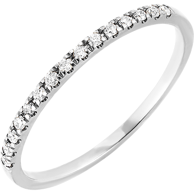 Een elegante en tijdloze witgouden trouwring bezet met delicate diamanten. Deze trouwring is perfect om te combineren met een verlovingsring of om alleen te dragen.