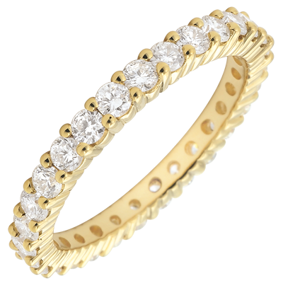 De perfecte balans tussen een geelgouden ring geplaveid met ronde diamanten voor een sterke symboliek. Een must juweeltje.