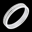 Nee, deze ring is volledig vervaardigd uit 18 karaat witgoud met een dubbele rij diamant-look, zonder stenen.