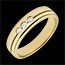In het midden zijn drie diamanten met een totaalgewicht van 0,156 karaat gezet.