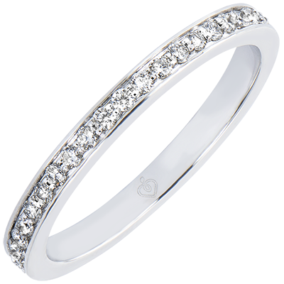 Trouwring van witgoud, ingelegd met diamanten, voor een uniek juweel en een vleugje schittering, naar het beeld van de gevoelens.