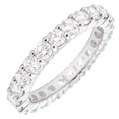 De perfecte balans tussen een witgouden ring geplaveid met ronde diamanten voor een sterke symboliek. Een must juweeltje.
