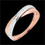 Een roségouden band wordt elegant gekruist door een witgouden band bezet met 4 briljant geslepen diamanten met een totaalgewicht van 0,02 karaat, wat een subtiele en verfijnde schittering geeft.