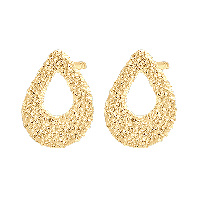Een paar resoluut moderne geelgouden oorknopjes. Versierd met een gestructureerd goudperenpatroon - diamanteffect. Verzekerde verliefdheid