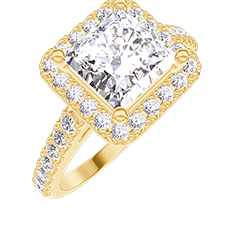 « L'ATELIER » NR. 1276048Ring Geelgoud 9 karaat - Laboratorium diamant Prinses 1 Karaat - Halo Laboratorium diamant - Setting Laboratorium diamant