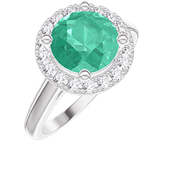 « L'ATELIER » NR. 1276380Ring Witgoud 18 karaat - Smaragd rond 1 Karaat - Halo Diamant