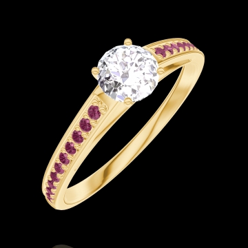 « L'ATELIER » Nº160010Ring Geelgoud 9 karaat - Diamant rond 0.3 Karaat - Setting Robijn 4.8 (36)