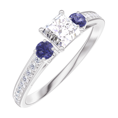 « L'ATELIER » NR. 160167Ring Witgoud 18 karaat - Diamant Prinses 0.3 Karaat - Aanleunende edelstenen Blauwe saffier - Setting Diamant