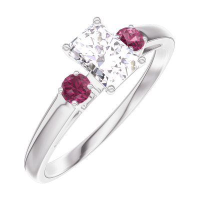 « L'ATELIER » Nº160243Ring Witgoud 18 karaat - Diamant Rechthoekig 0.3 Karaat - Aanleunende edelstenen Robijn